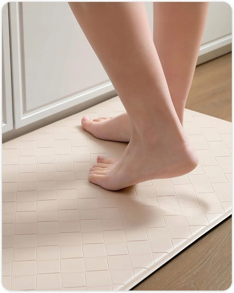 ✅ Materiał najwyższej jakości i wygoda: Mata kuchenna wykonana jest z przyjaznego dla środowiska spienionego PVC o powolnym odkształcaniu, co pomaga zrelaksować stopy, zapobiega ich bólowi i pozwala cieszyć się czasem gotowania, nawet jeśli musisz stać przez długi czas.