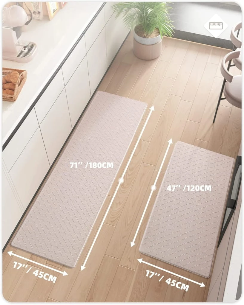 ✅ Antypoślizgowy i bezpieczny: Spód tej maty kuchennej wykonany jest z materiału PVC w połączeniu z antypoślizgową fakturą w kształcie diamentu, co zapewnia dobry efekt antypoślizgowy na powierzchni drewnianych podłóg, płytek i podłóg cementowych, zapobiegając przypadkowym upadkom i chroniąc przybory kuchenne.