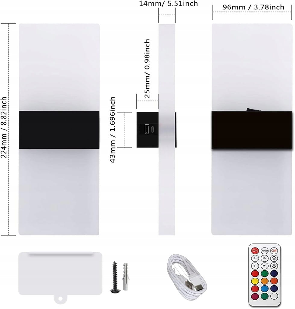 ⭐ Bezprzewodowy Kinkiet Ścienny VOMI RGB Akumulatorowa Lampa LED 4000 mAh, Dotykowa, Bez Podłączenia do Prądu (Zestaw 2 szt.) ⭐