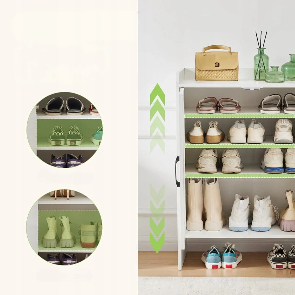✅ Regulowane półki - ta wysoka szafka do przechowywania jest wyposażona w pięć regulowanych półek, które bez problemu pomieści buty o różnych kształtach i rozmiarach, takich jak baleriny, buty sportowe, wysokie obcasy lub buty półwysokie. Dzięki regulowanym półkom szafki na buty można w każdej chwili zmienić strukturę przestrzenną szafki na buty, aby stworzyć wystarczająco dużo miejsca do przechowywania w strefie wejściowej.