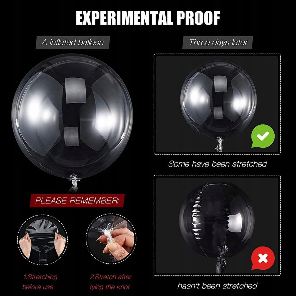 - ✅ Dla przypomnienia. Zdjęcie pokazuje maksymalny rozmiar. Dla wygody i bezpieczeństwa zaleca się, aby go nie przepełniać. Te przezroczyste balony mogą unosić się na wodzie tylko wtedy, gdy są wypełnione helem. Przed napompowaniem możesz ścisnąć krawędź balonu i odpowiednio go rozciągnąć.