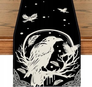 Bieżnik retro 40 x 180 cm – czarny, ptak, Wikingowie
