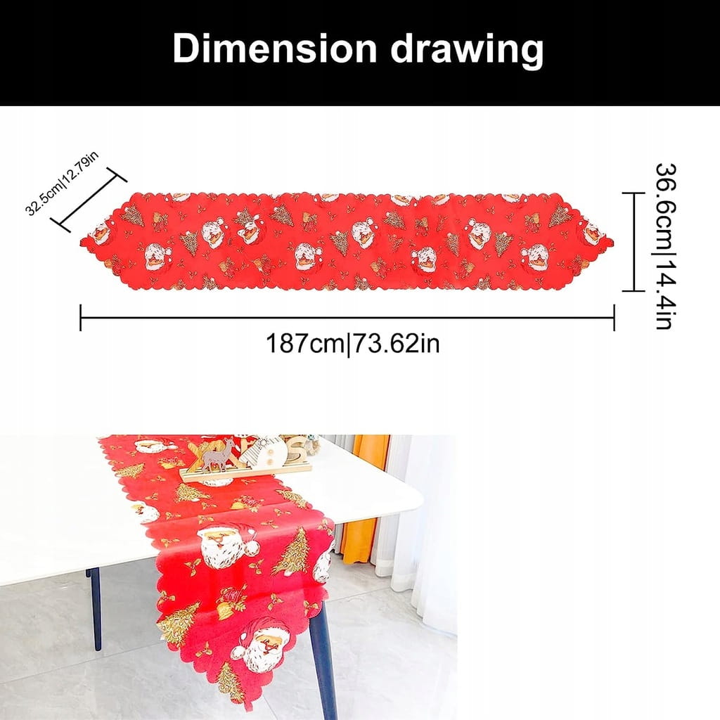 - [Wysoka jakość] Obrus bożonarodzeniowy jest wykonany z wysokiej jakości poliestru, jest miękki i wytrzymały, chroni powierzchnię stołu przed gorącymi patelniami, zarysowaniami i rozpryskami