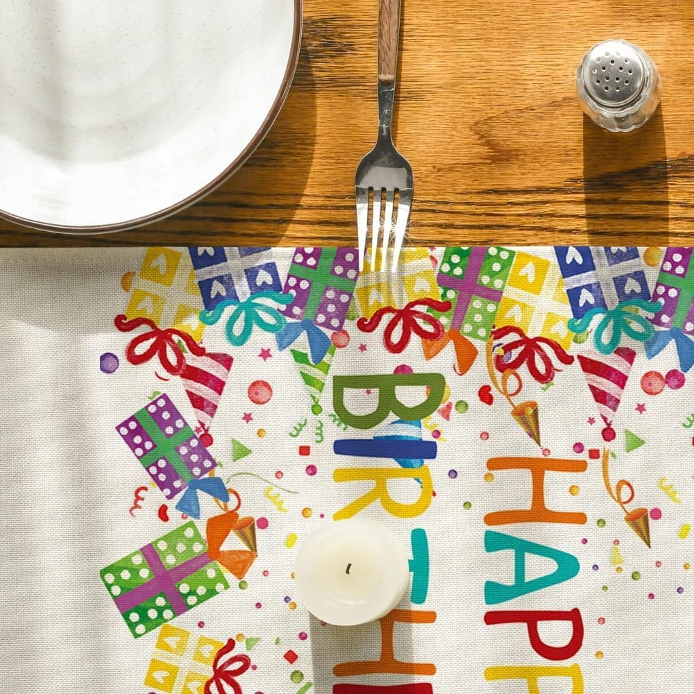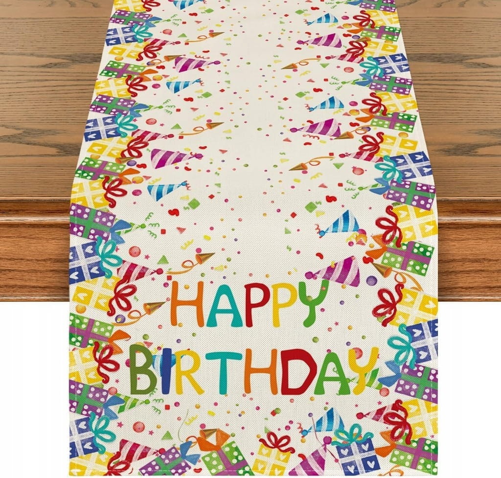 Bieżnik urodzinowy na stół 40 x 140 cm – dekoracyjny Happy Birthday