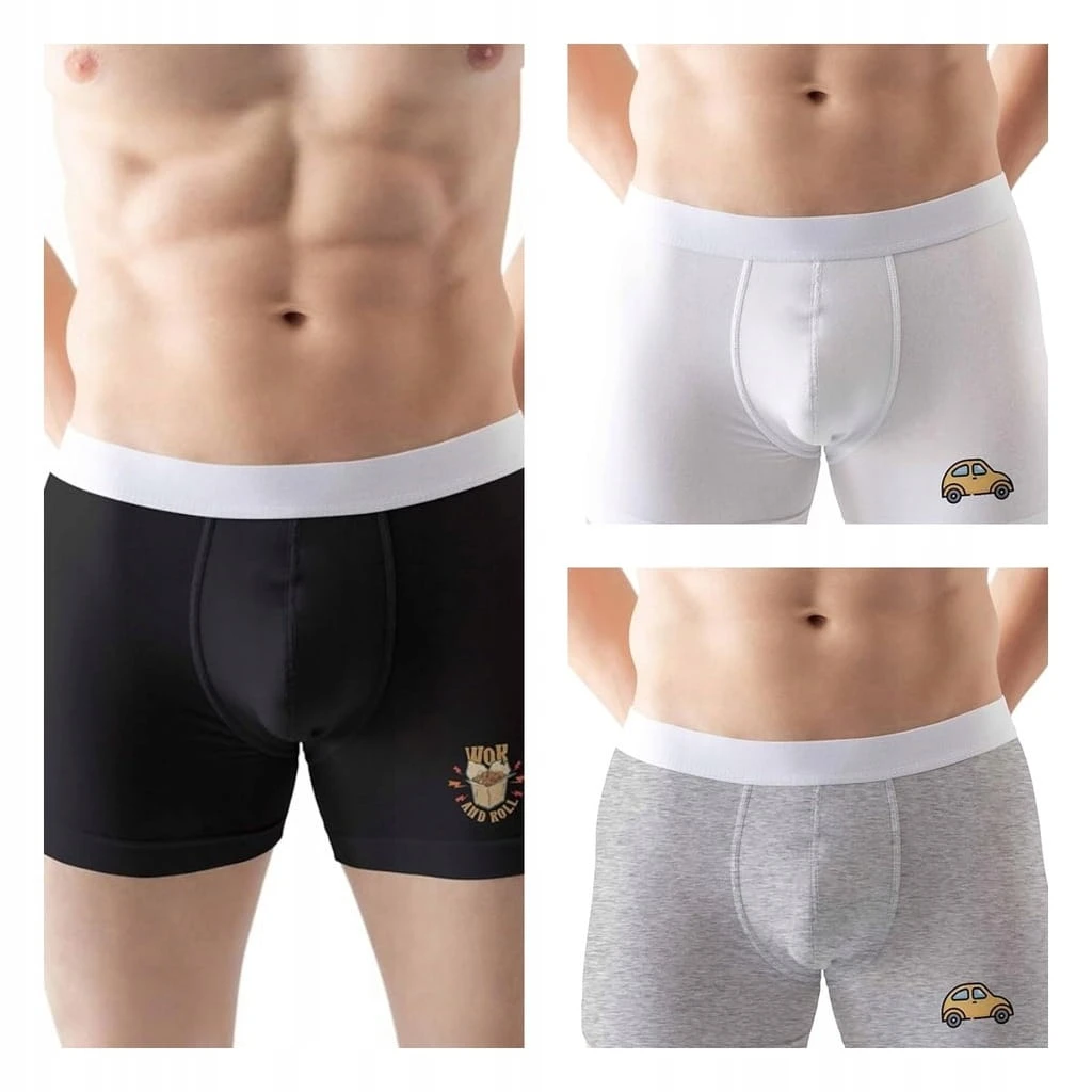 Bokserki męskie – bawełniane, Green Fish, mix wzorów (zestaw – 3 sztuki), rozmiar XL