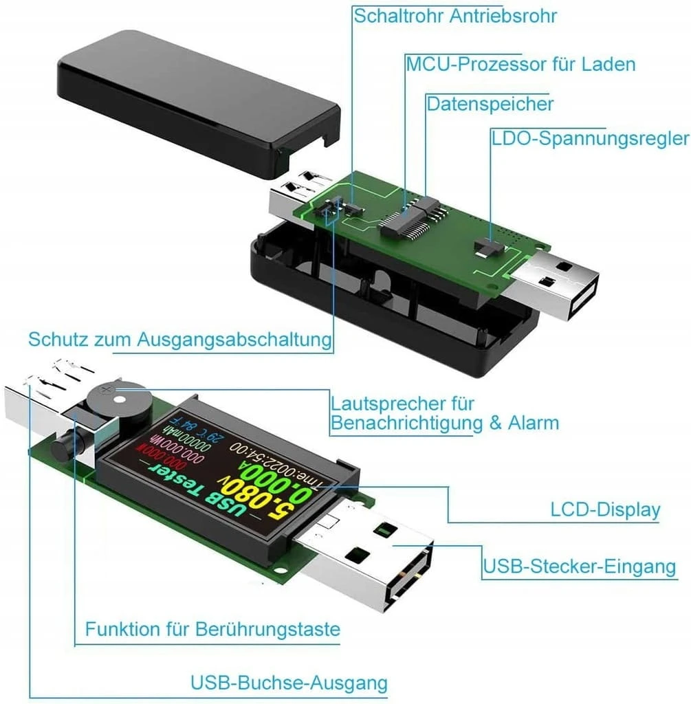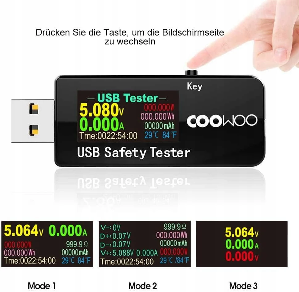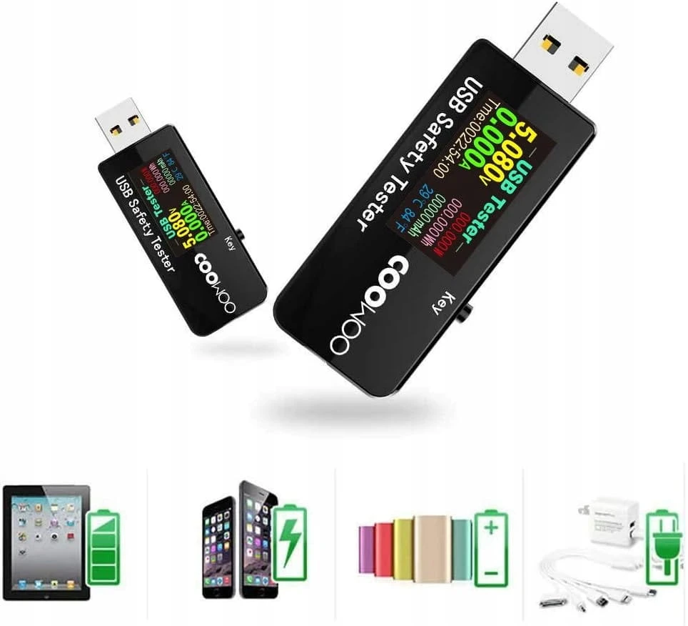 - ✅ Wielofunkcyjny: za pomocą inteligentnego cyfrowego miernika USB firmy COOWOO można sprawdzić napięcie, natężenie prądu, pojemność, moc, energię elektryczną, czas ładowania itd. Wyświetlacz LCD o przekątnej 0,96" umożliwia łatwe monitorowanie napięcia ładowania i prądu ładowania cyfrowego urządzenia USB przy jednoczesnym zachowaniu optymalnej prędkości ładowania. Natężenie prądu i napięcie są wyświetlane w czasie rzeczywistym.
