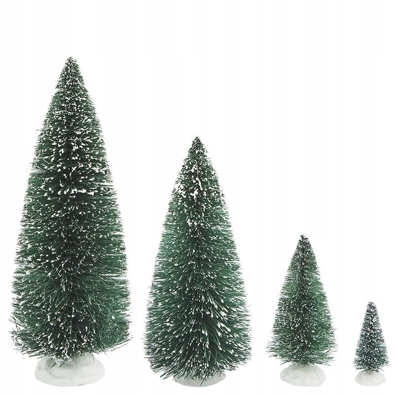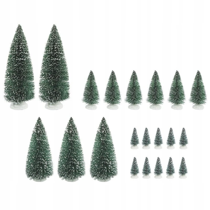☑️ 10 ozdobnych choinek ośnieżonych z tworzywa sztucznego w różnych rozmiarach.