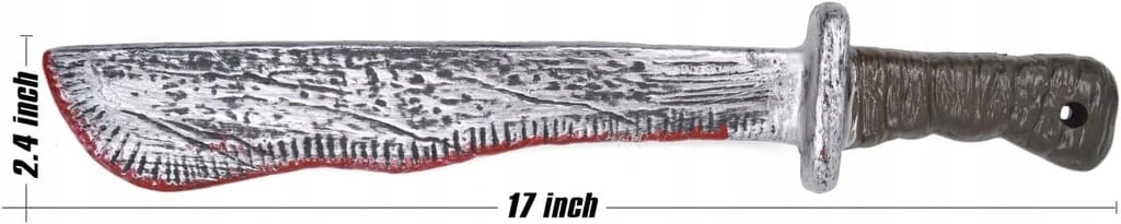 Dekoracja Halloween „krwawy nóż + sierp + kosa” – 43 cm (zestaw – 2 sztuki)