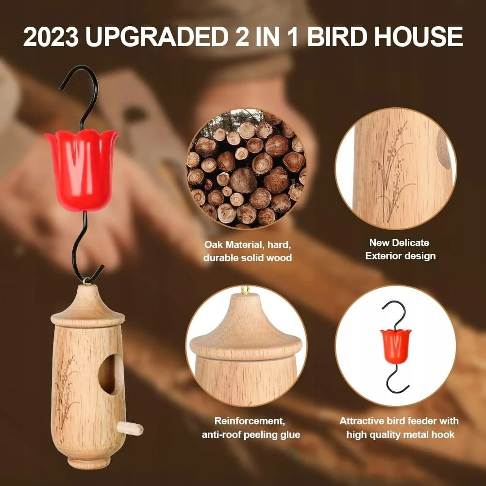 - ✅ Drewniany domek dla kolibrów. Ręcznie robiona klatka dla ptaków ma nowatorski kształt. Powieszenie dekoracyjnego domku dla kolibra w ogrodzie lub w pokoju wczesną wiosną może dodać odrobinę wiosny. Domek dla kolibrów wykonany jest z naturalnego drewna sosnowego, które ma bardziej naturalny smak i łatwiej przyciąga kolibry do gniazdowania.