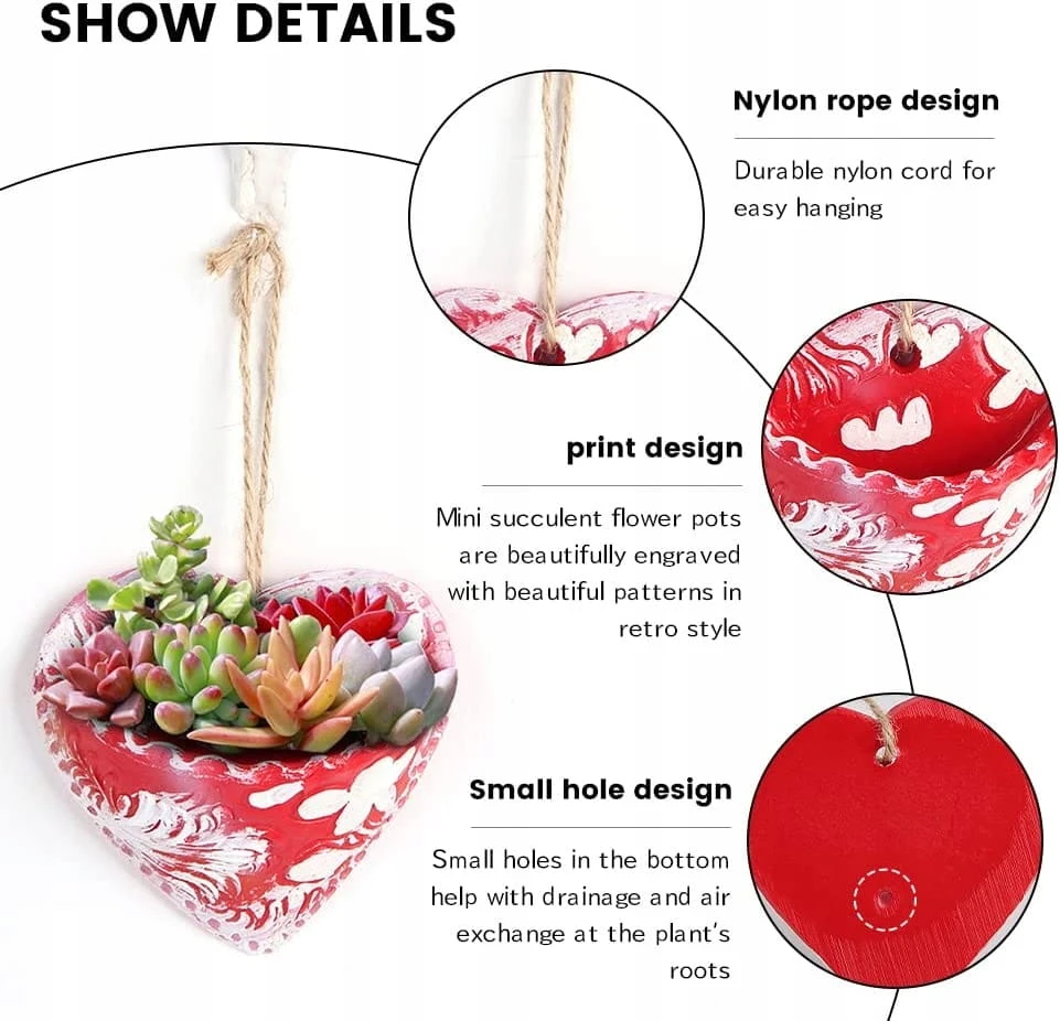 - Niesamowity wygląd serca wyraźnie odróżnia go od innych klasycznych sadzarek ściennych. Nie jest to już prosty trójkątny pojemnik, ale wyjątkowa dekoracja serca na ścianie, która przyciąga pierwsze spojrzenia przechodniów.