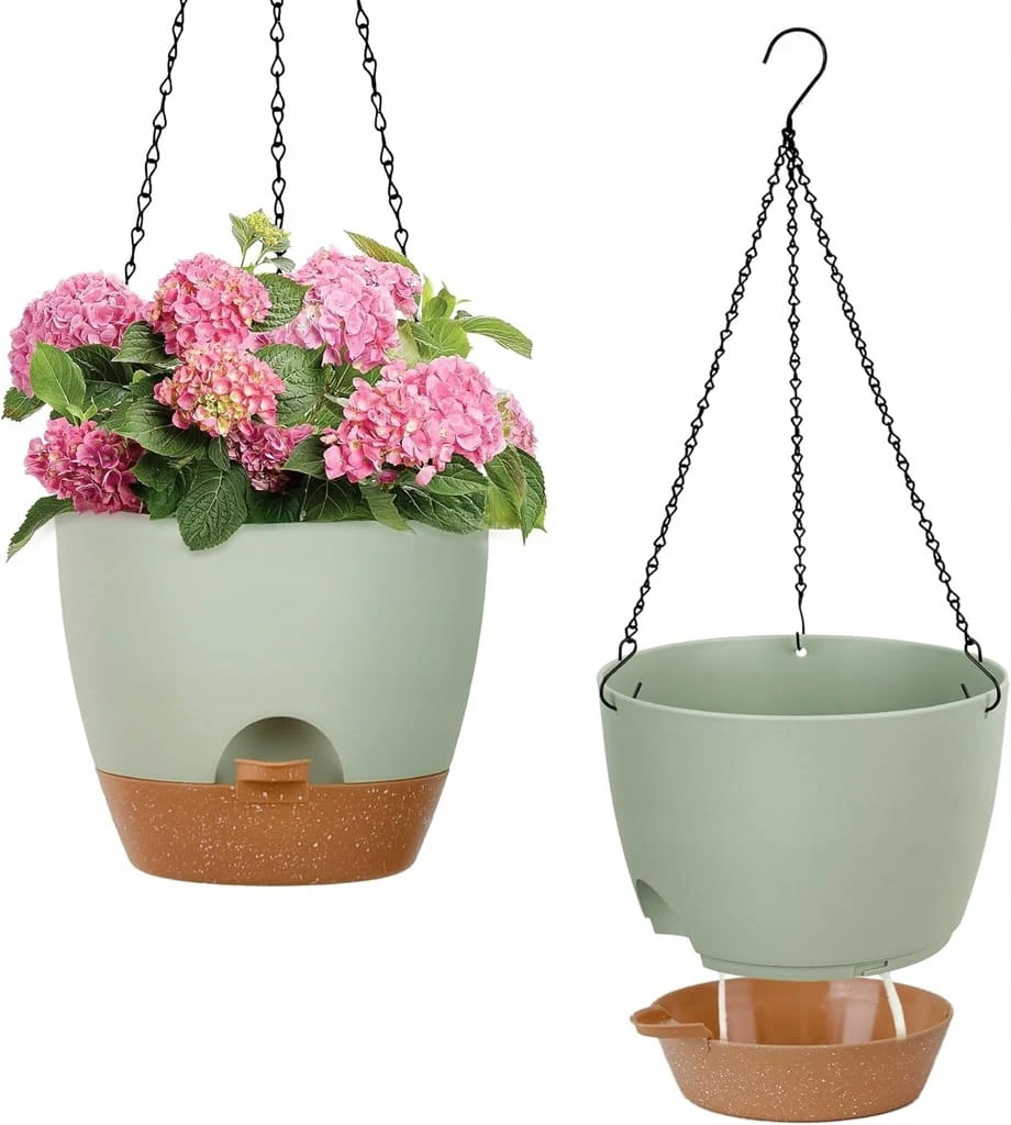Doniczka wisząca samonawadniająca z haczykiem – na balkon, taras, ogród (zestaw – 2 sztuki)