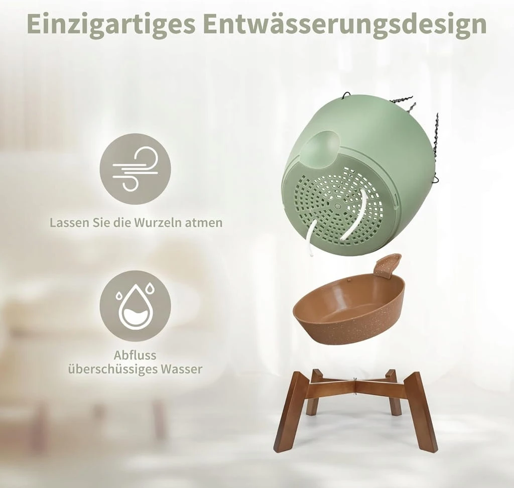 - ✅ Doskonałe otwory drenażowe. Otwory na dnie wewnętrznych doniczek umożliwiają efektywne odprowadzanie wody i utrzymują wilgotność podłoża. Otwory siatkowe wspierają cyrkulację powietrza, co jest ważne dla wzrostu korzeni.