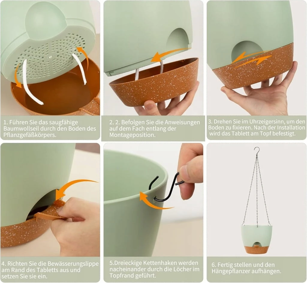- ✅ Wiszące doniczki Easy Plant - zestaw do samodzielnego nawadniania ma zbiornik na wodę na dnie i zbiornik na wodę jest oddzielony od podłoża. Jeśli roślina wymaga podlewania, woda ze zbiornika wody przepływa do ziemi przez chłonącą wodę bawełnianą linkę. Roślinę można podlewać maksymalnie co dwa tygodnie.