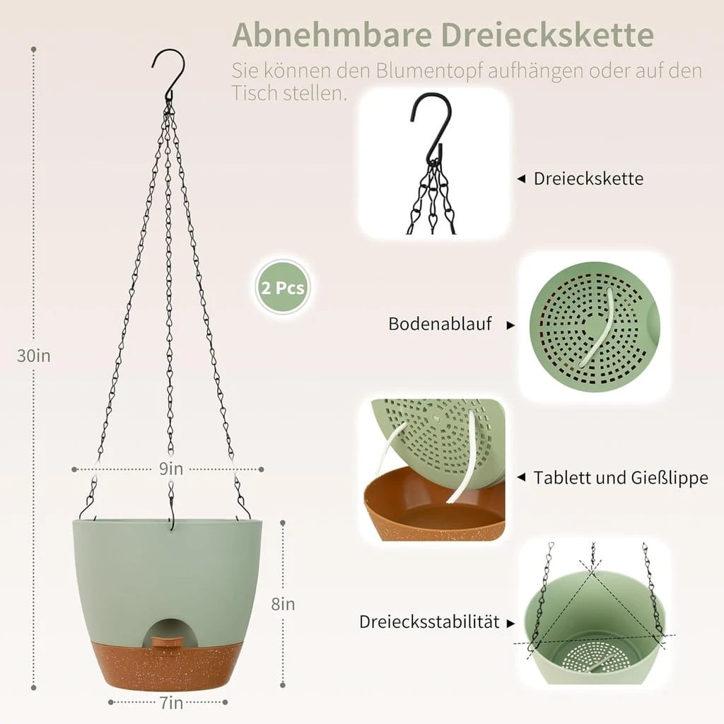 - ✅ Wytrzymały materiał PP i metalowy łańcuch: Wiszące, samonawadniające się doniczki są wykonane z trwałego i nieszkodliwego tworzywa sztucznego, są wytrzymałe i trwałe oraz zapewniają bezpieczne środowisko wzrostu roślin. Bardzo mocna, nośna.