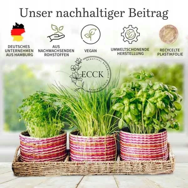 - Rękodzieło - Każdy zestaw doniczek z trawy morskiej jest wyjątkowy, starannie wykonany ręcznie. Jako ekologiczni przyjaciele Hamburga stawiamy na materiały o niskim śladzie węglowym. Wybierz jedną z naszych indywidualnych i zrównoważonych dekoracji z trawy morskiej.