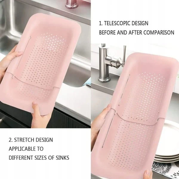 Durszlak wysuwany na zlew – ociekacz regulowany, różowy