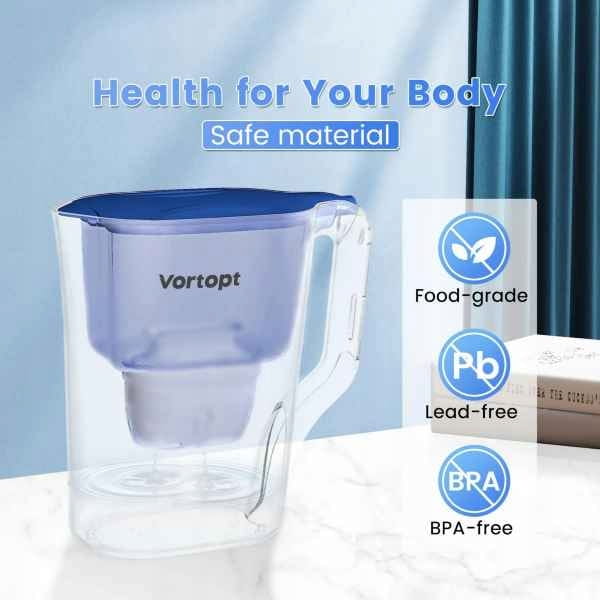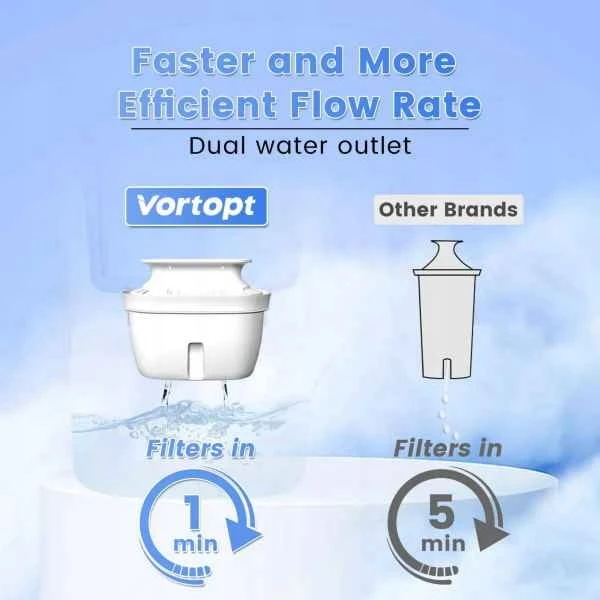 - ✅ Wydajność filtracji z certyfikatem CE: Dzbanek filtrujący do wody uzyskał certyfikat CE, który potwierdza użycie wyłącznie wysokiej jakości węgla. Filtr do wody Vortopt skutecznie redukuje zanieczyszczenia, takie jak rdza, osad, chlor, ołów, zapachy i poprawia smak, dzięki czemu woda jest czysta i zdrowa