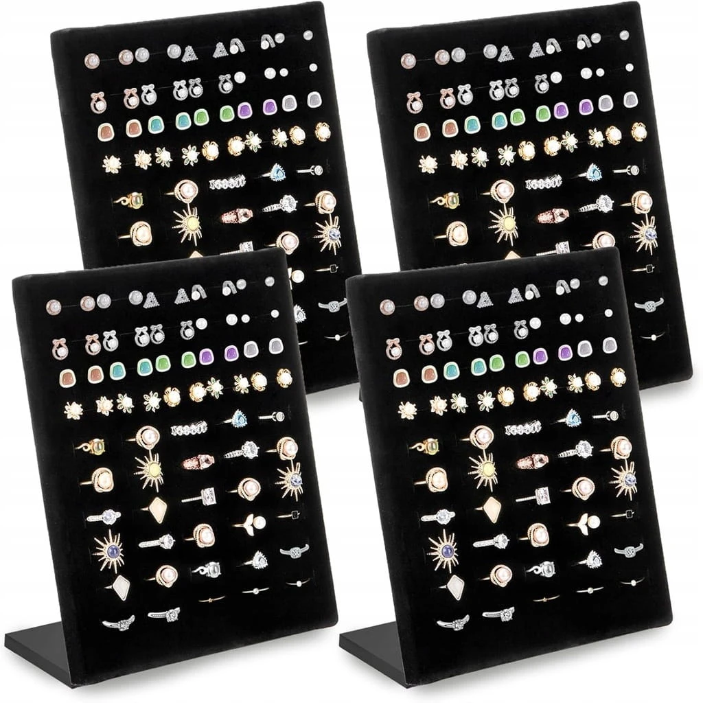Ekspozytor biżuterii – stojak/tacka aksamitna na pierścionki i kolczyki (zestaw – 4 sztuki)