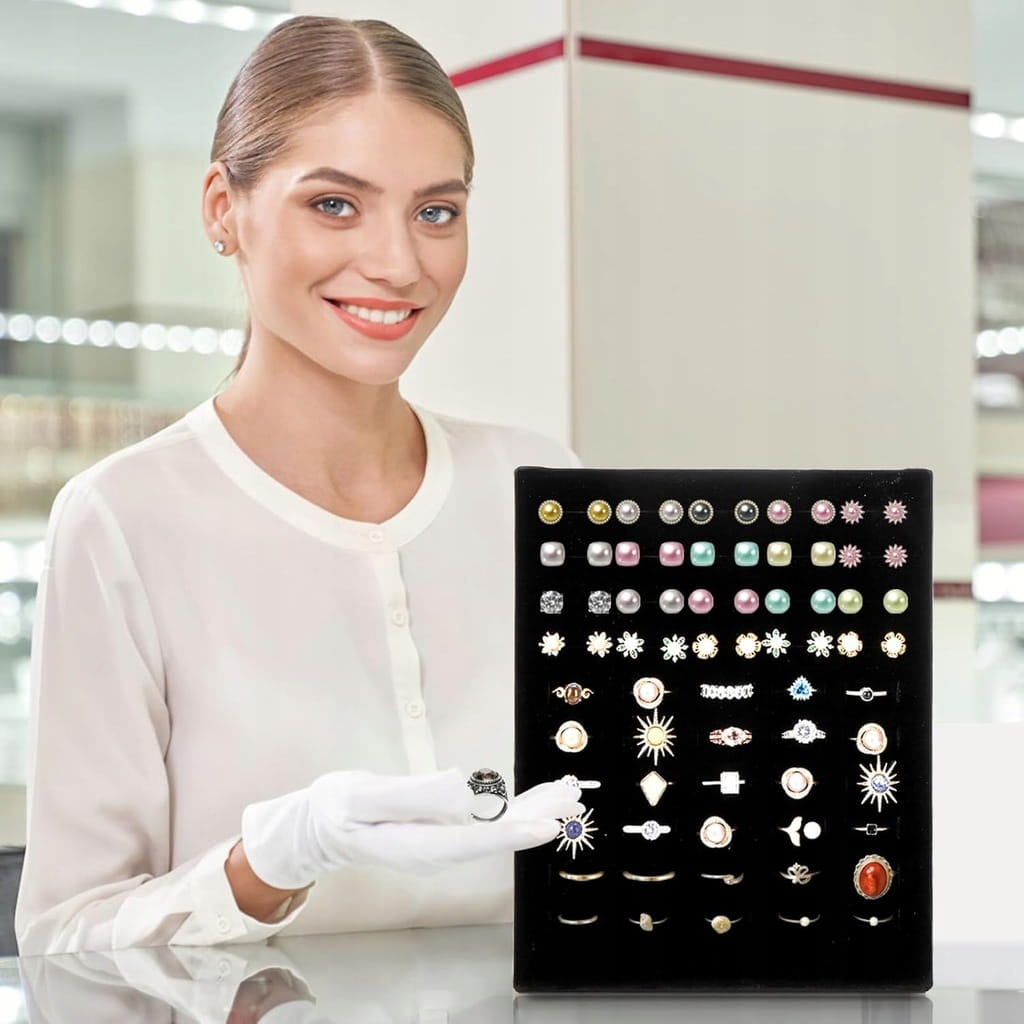 - ✅ Wszechstronność: Idealnie nadaje się nie tylko do użytku osobistego, aby uporządkować biżuterię w domu, ale także jest idealnym sposobem dla sprzedawców biżuterii, którzy chcą podkreślić i zaprezentować swoje produkty klientom. Niezależnie od tego, czy chodzi o prezentację pierścionków mistrzowskich, czy prezentowanie najnowszej kolekcji biżuterii, nasza wszechstronna taca została zaprojektowana tak, aby zaimponować.