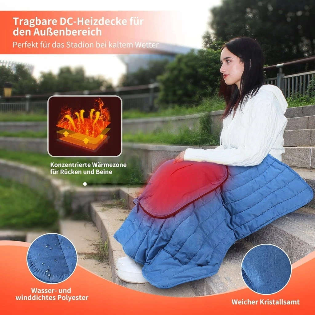 - ✅ Koc elektryczny z przyłączem DC dla bezpiecznego użytkowania: Ten koc nagrzewa się po podłączeniu go do portu 7.4V/2A. Gwarancja jakości i bezpieczeństwa, kontrola temperatury, zabezpieczenie przed przegrzaniem i zabezpieczenie przed zwarciem zapewniają, że możesz odpoczywać na miękkiej i wygodnej powierzchni i szybko się nagrzewać. Świetna wydajność cieplna na chłodne wieczory na świeżym powietrzu i wystarczająca, aby utrzymać ciepło na kolanach i rozgrzać ciało.