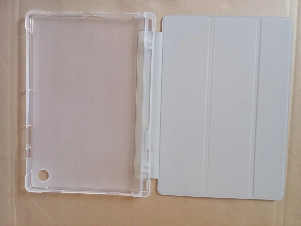 - Materiał: Półprzezroczysty, matowy, twardy tył chroni plecki tabletu i amortyzuje wstrząsy.