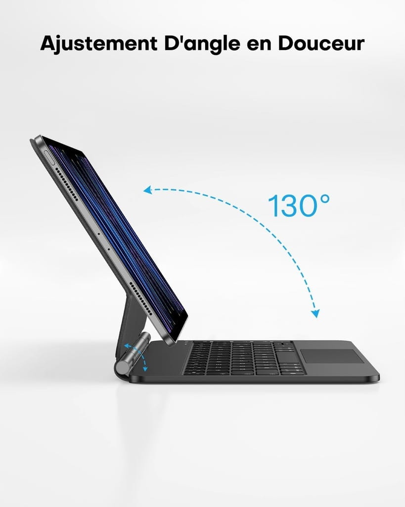 - ☑️ Pływająca konstrukcja wspornika: Mocne magnetyczne ssanie 11-calowej obudowy klawiatury iPad Air zapewnia bezpieczeństwo urządzenia. Klawiatura do iPada otwiera się i zamyka magnetycznie, a także posiada funkcje automatycznego uśpienia i uśpienia. Aby uzyskać optymalne przyciąganie magnetyczne, upewnij się, że aparat iPada jest równy z otwarciem aparatu w obudowie klawiatury