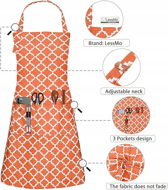 - ✅ 3 kieszenie: 2 duże i 1 mała. Duży może służyć do przechowywania portfeli, telefonów komórkowych, gadżetów kulinarnych, kart z przepisami, narzędzi ogrodowych itp.; mały może służyć do przechowywania długiej zastawy stołowej, długopisów itp. Możesz uwolnić ręce, gdy jesteś zajęty.