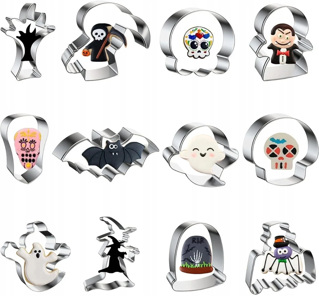 Foremki do ciastek Halloween – wykrawacze, zestaw do pieczenia (zestaw – 12 sztuk)