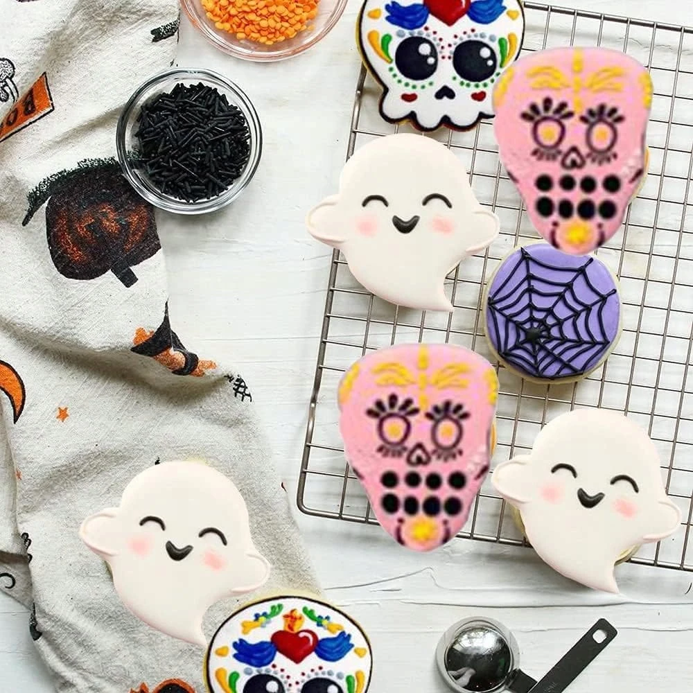 - ✅ Różne foremki do ciastek: 12 szt. Foremki do ciasteczek, takich jak dłoń demonów, wampir, czaszka, grób, duch, demon, grymass, czarownica, pająk. Idealnie nadają się do zabawy z dziećmi pieczeniem i uroczymi ciasteczkami na Halloween.