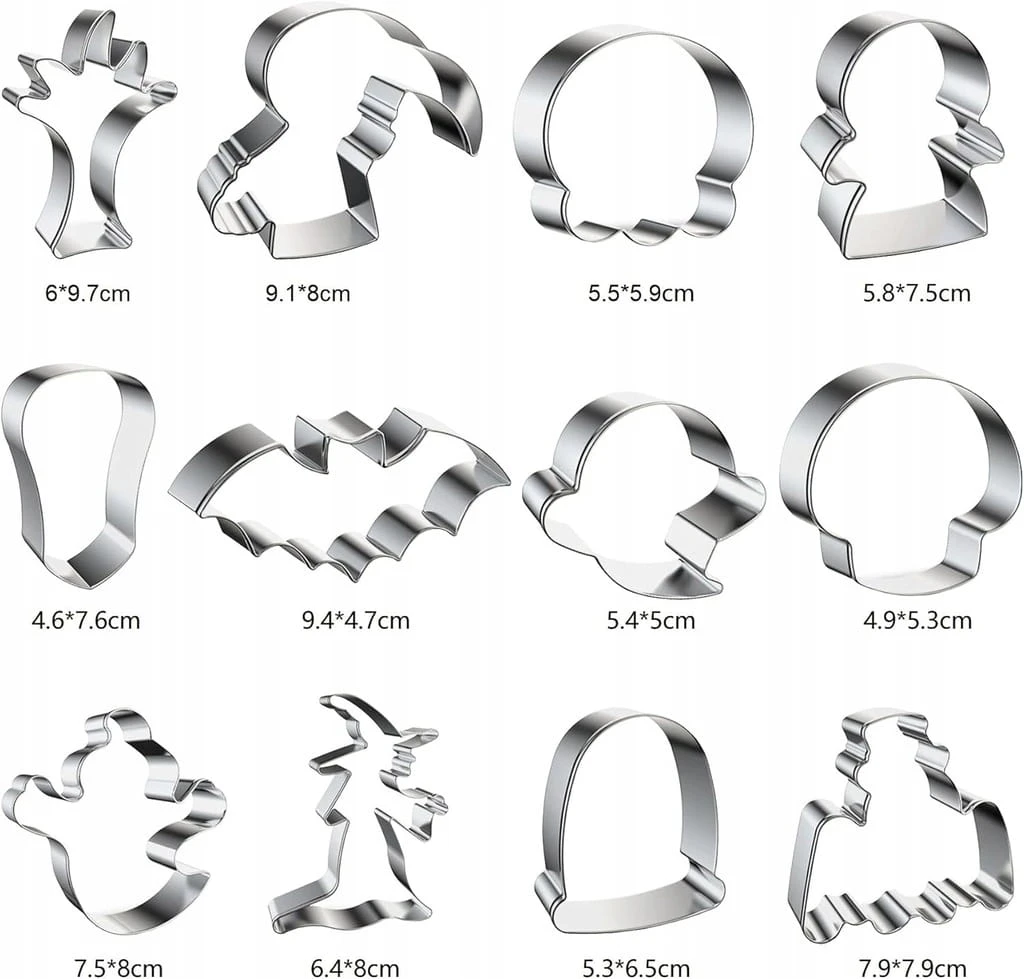 - ✅ Materiał: foremka do wycinania ciasteczek na Halloween, wykonana ze stali nierdzewnej, odporna na korozję, stal o grubości 0,3 mm, bardzo trwała i dlatego może być używana wielokrotnie. Są łatwe do czyszczenia i mają dobrą trwałość.