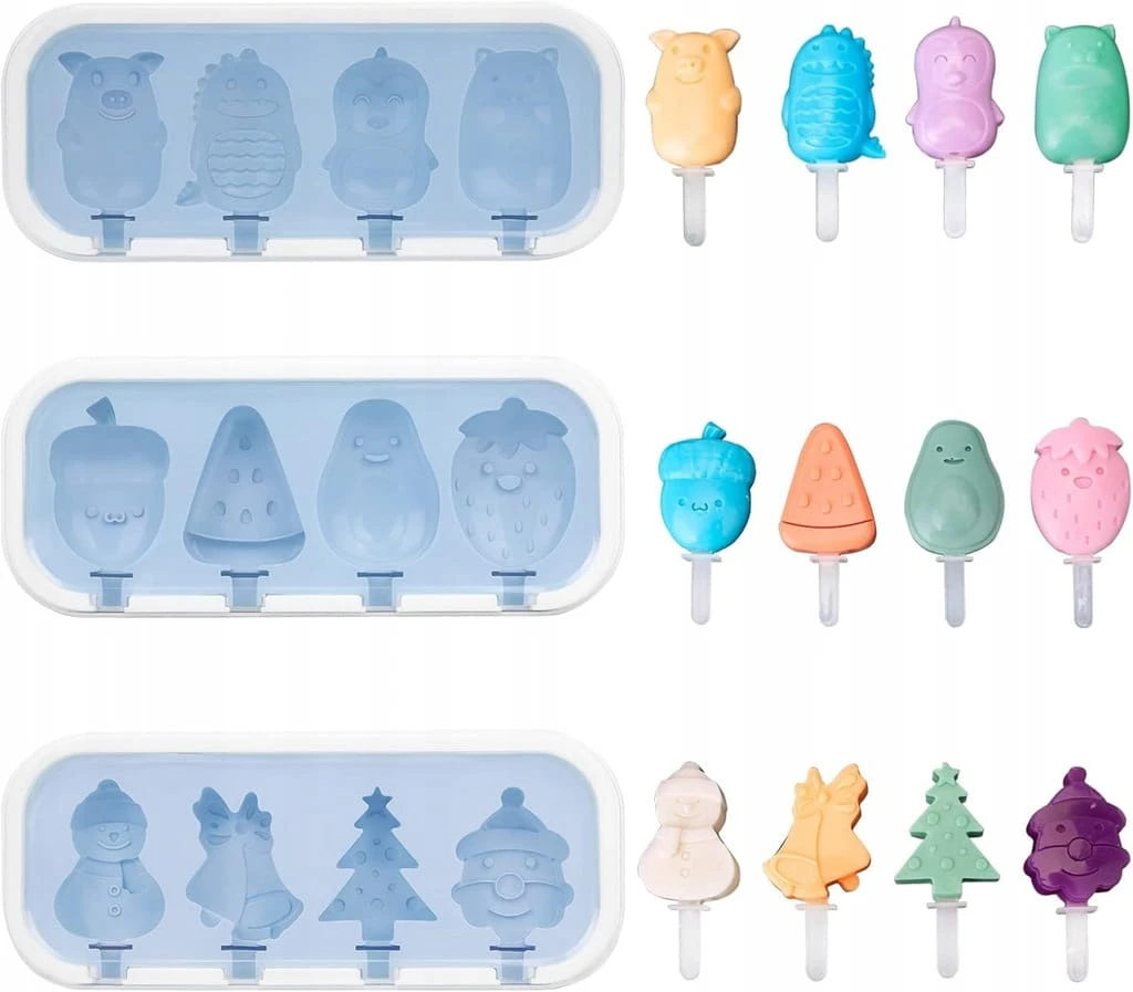 - ✅ Foremka składa się z 12 wzorów, w tym truskawka, Sydney, arbuz, orzeszki piniowe, prosiak, pingwin, choinka, Święty Mikołaj itp. Urocze wzory mogą wzbudzić zainteresowanie dzieci robieniem lodów na patyku i pozwolić Tobie i Twoim dzieciom cieszyć się razem chłodnym latem.