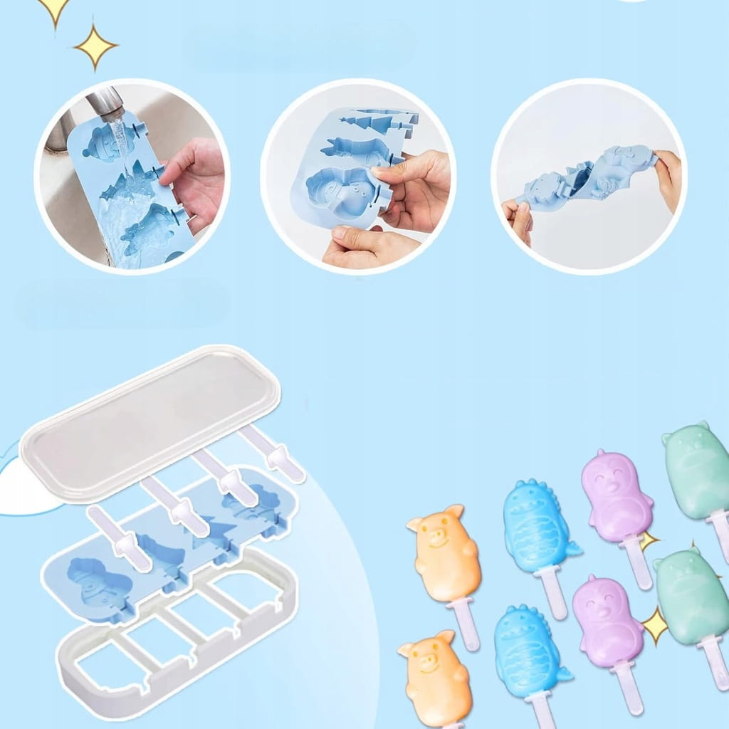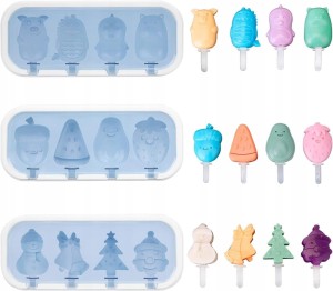 Foremki silikonowe do lodów – z pokrywką i patyczkami (zestaw – 3 sztuki)