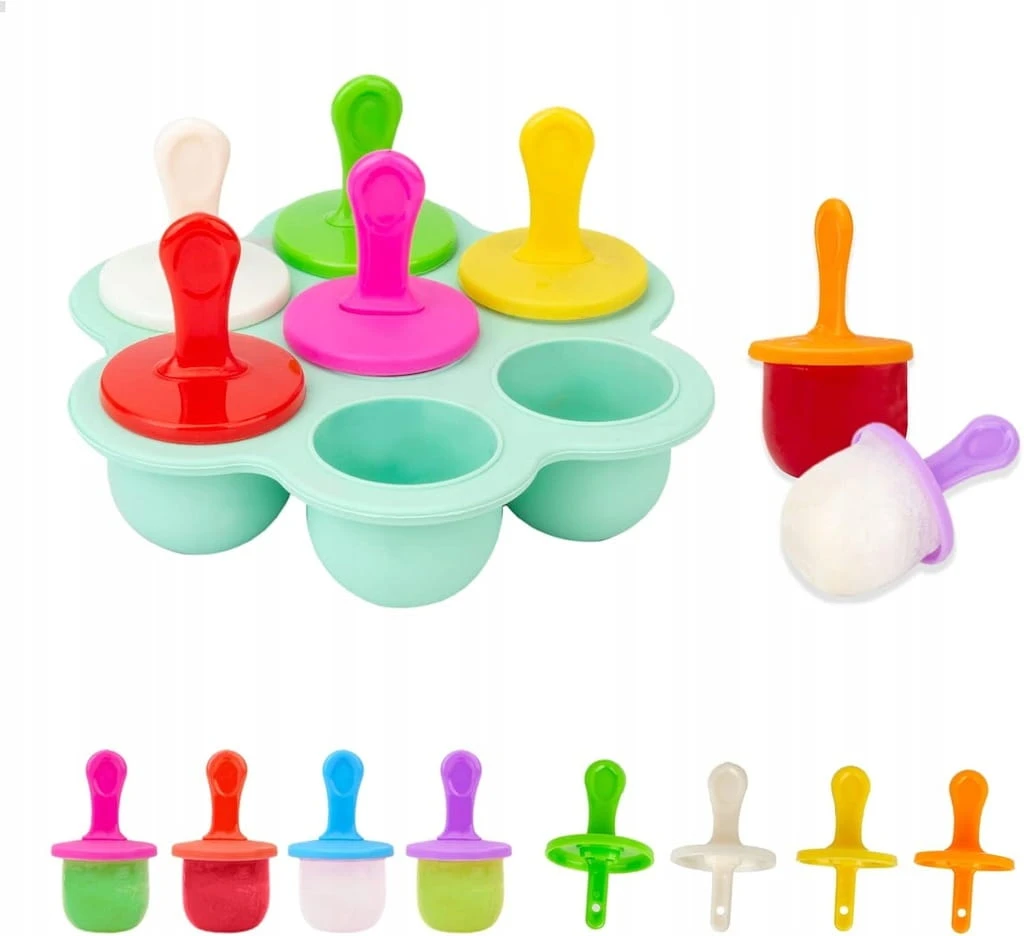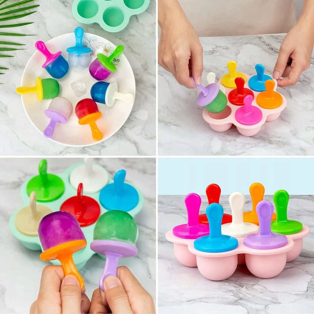 Foremki silikonowe na lody DIY – 7 szt. z patyczkami i pokrywką