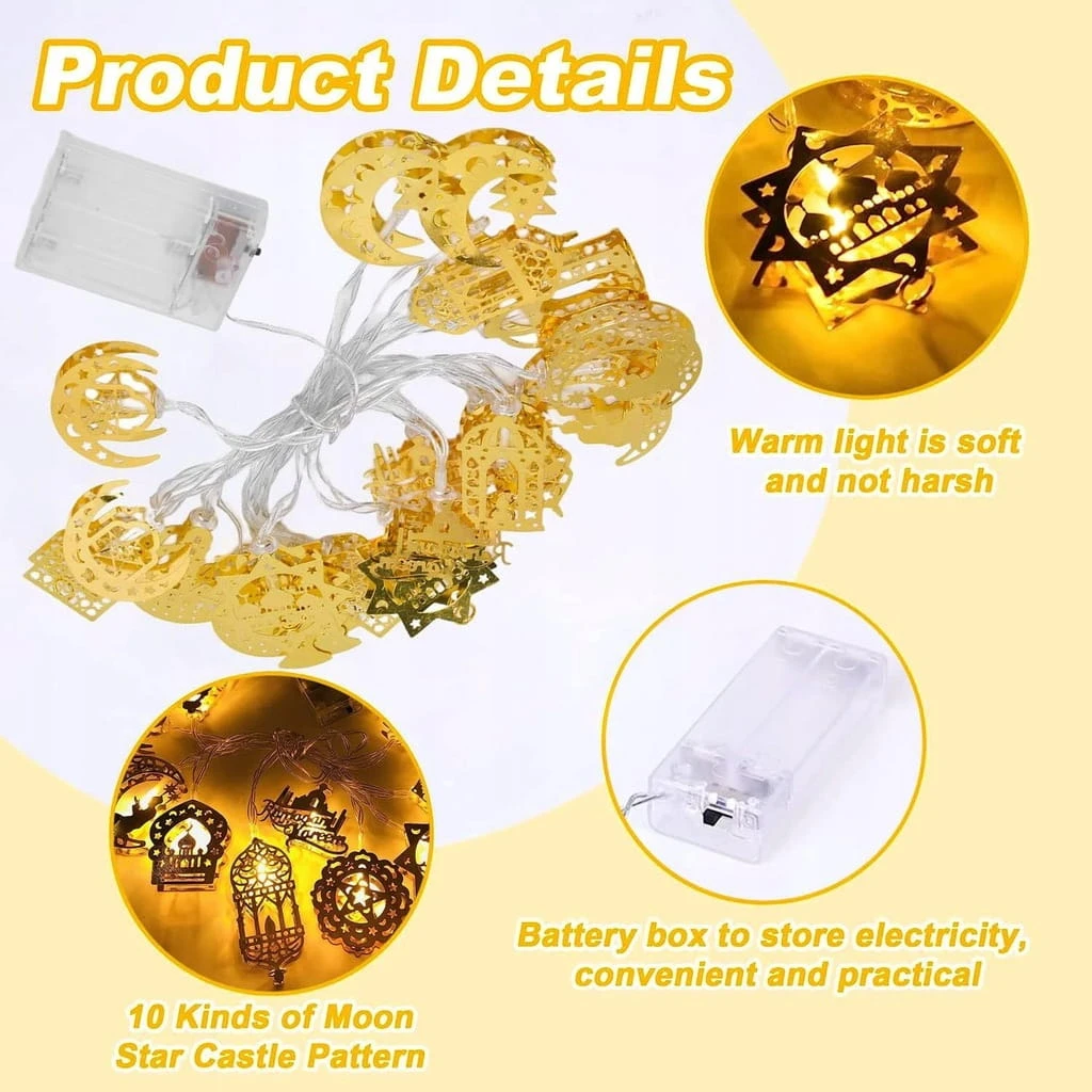 - ✅ Zestaw zawiera. Otrzymasz kawałek bajki Ramadanu, dekoracyjne łańcuchy świetlne można umieścić na stole lub powiesić w dowolnym miejscu, gdzie chcesz, jako piękna dekoracja; mam nadzieję, że będziesz cieszyć się festiwalem.
