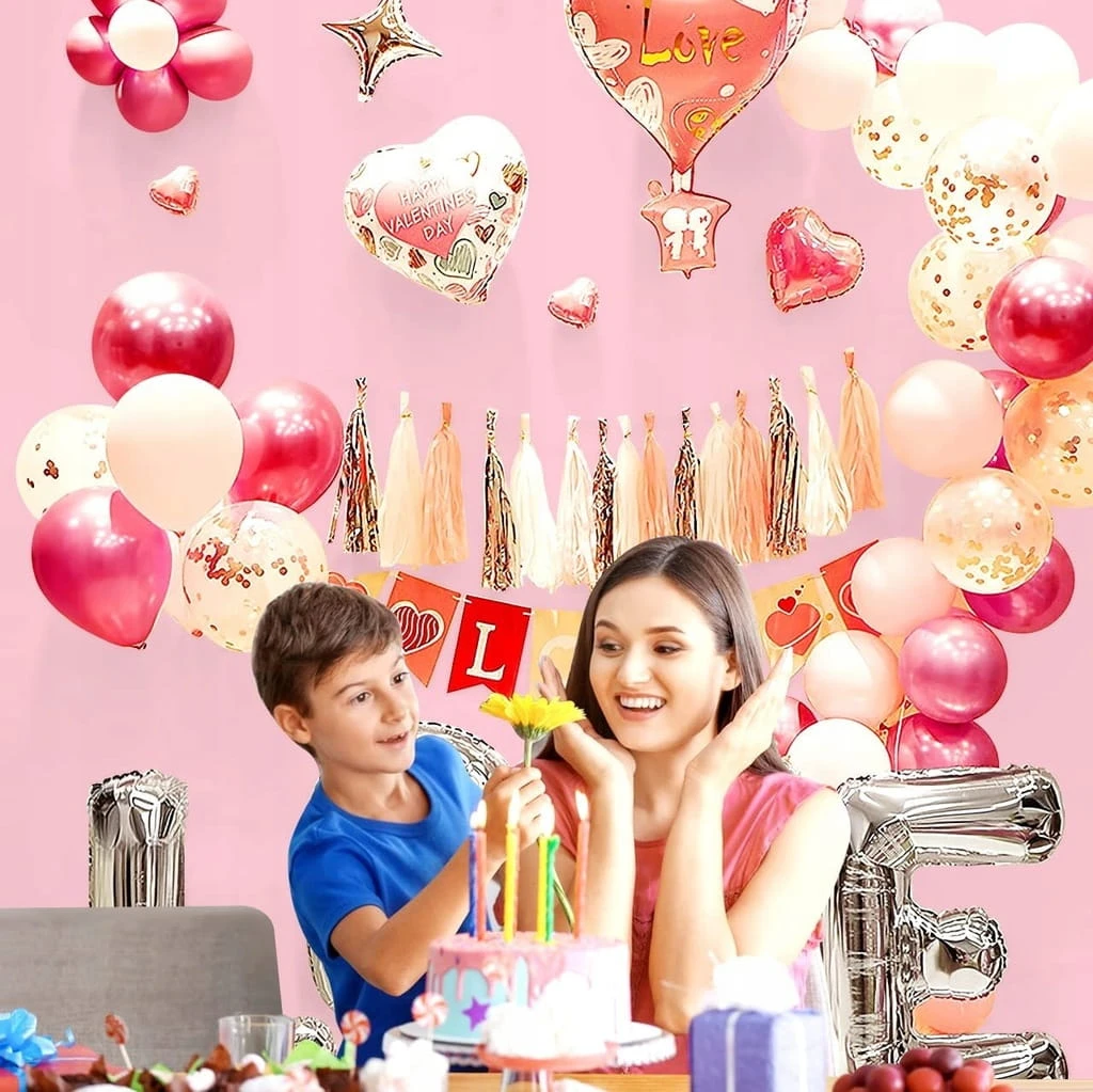 - Idealny do dekoracji walentynkowych. Ta dekoracja balonowa o tematyce walentynkowej jest idealna do dekoracji walentynkowej, dekoracji przyjęcia i dekoracji ślubnej. Balony z gorącym powietrzem i balony z folii Heart Pink sprawią, że Twoja impreza walentynkowa będzie wyjątkowo efektowna! Użyj go, aby wyrazić swoją miłość do ukochanej osoby!