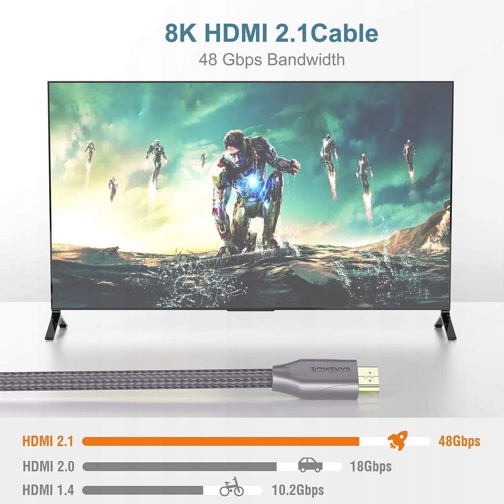 - ✅ Lepsze wrażenia w grach: W porównaniu z HDMI 4K, HDMI BOMENYA nie ogranicza się do 4K@60Hz, co pozwala na wysoką jakość obrazu w 8K przy 48 Gb/s i płynne 4K przy 120 Hz. HDMI 8K dodaje ulepszony kanał zwrotny audio (eARC) dla dźwięku HD i najwyższej jakości dźwięku. Obsługuje również zmienną częstotliwość odświeżania (VSR) w celu dokładniejszego przetwarzania renderowanych obrazów. Idealny dla entuzjastów gier, którzy mogą cieszyć się płynną rozgrywką z dużą liczbą klatek na sekundę bez przerywanych animacji i rozrywania ekranu.