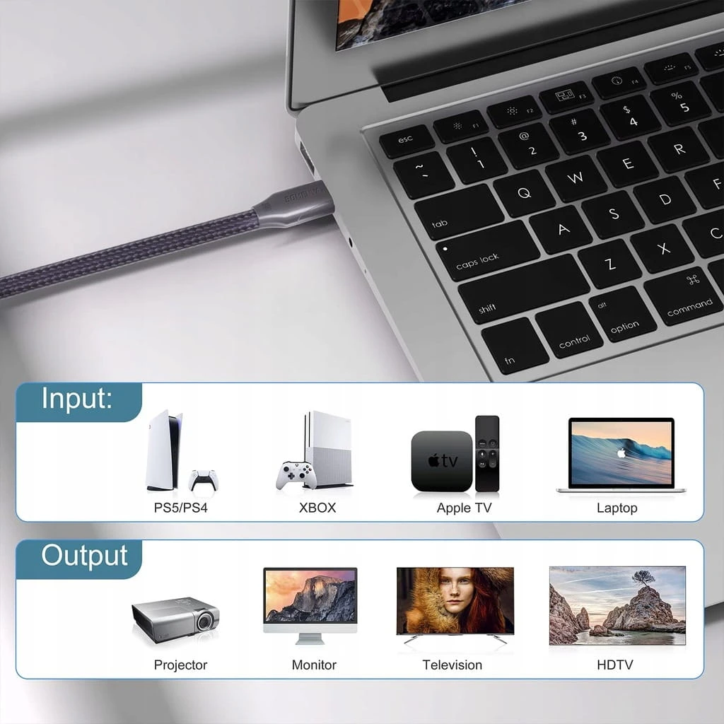 - ✅ Szeroka kompatybilność: HDMI 8K jest kompatybilny z najnowszą wersją 2.1 i wstecznie kompatybilny z wersjami 2.0 / 1.4 / 1.2 / 1.1. Obsługuje podłączanie laptopów, odtwarzaczy Blu-ray, telewizorów HD, monitorów, projektorów i laptopów z wyjściem HDMI do telewizorów 4K Ultra HD, projektorów, amplitunerów A/V itp.