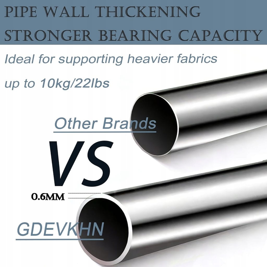 - ✅ Stabilny i trwały. Wykonane z wysokiej jakości stali, wytrzymałe wsporniki karnisza są idealne do podtrzymywania tkanin o wadze do 10 kg; Wieloczęściowa konstrukcja skutecznie zapobiega wyginaniu się pręta, a grubość ścianki pręta wynosi 0,6 mm, co ułatwia wieszanie różnych zasłon przez długi czas.