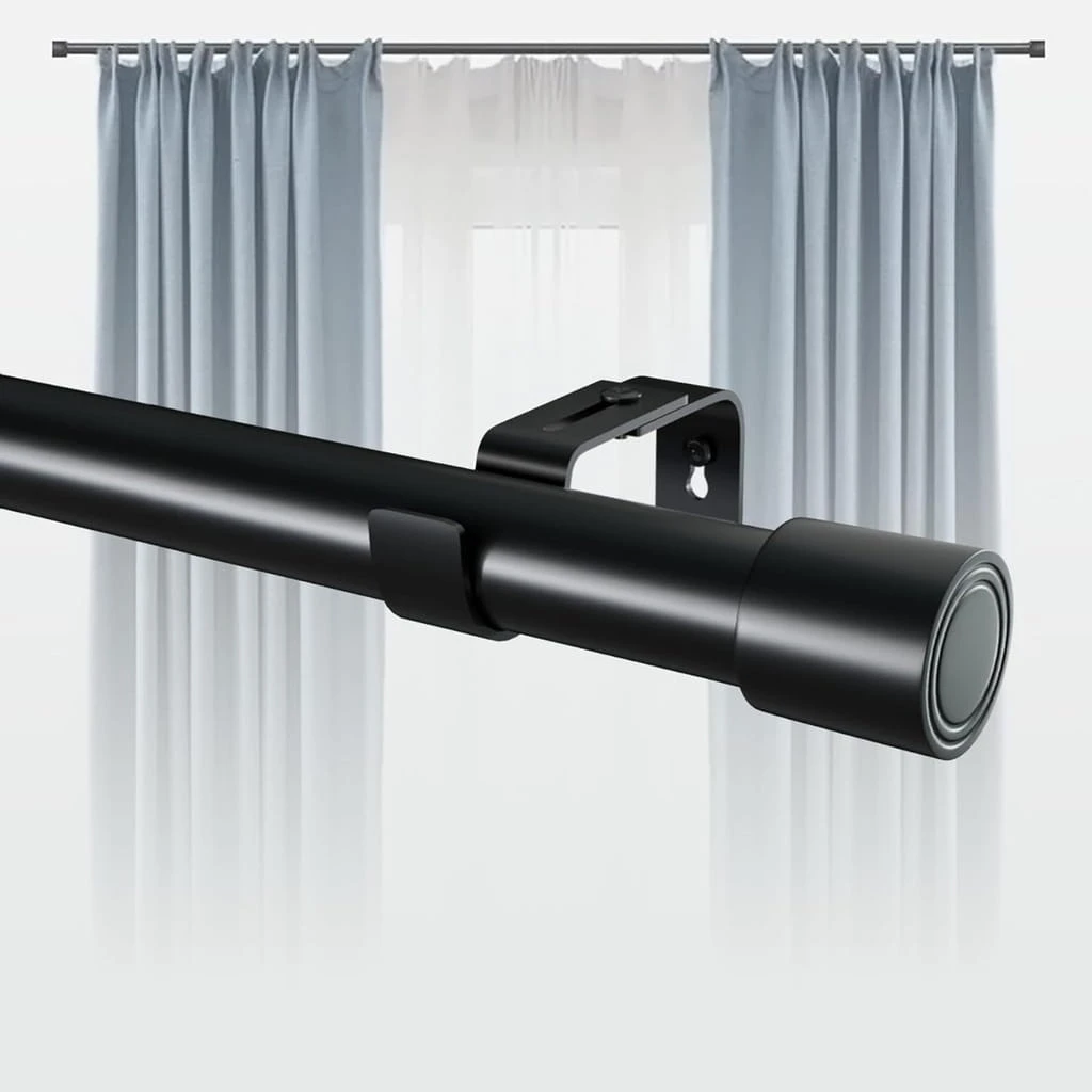 - ☑️ Solidny i trwały: Jest wykonany z wytrzymałego materiału. Pogrubiona konstrukcja 0,6 mm skutecznie zapobiega zginaniu się pręta, a także może dobrze wytrzymać ciężkie zasłony. Wysokiej jakości powłoka lakiernicza sprawia, że jest odporna na korozję i trwała.