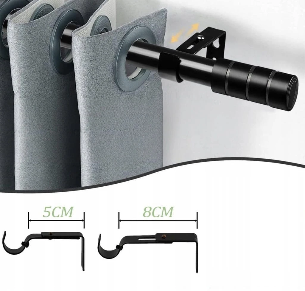 - ☑️ Solidny i trwały: Jest wykonany z wytrzymałego materiału. Pogrubiona konstrukcja 0,6 mm skutecznie zapobiega zginaniu się pręta, a także może dobrze wytrzymać ciężkie zasłony. Wysokiej jakości powłoka lakiernicza sprawia, że jest odporna na korozję i trwała.