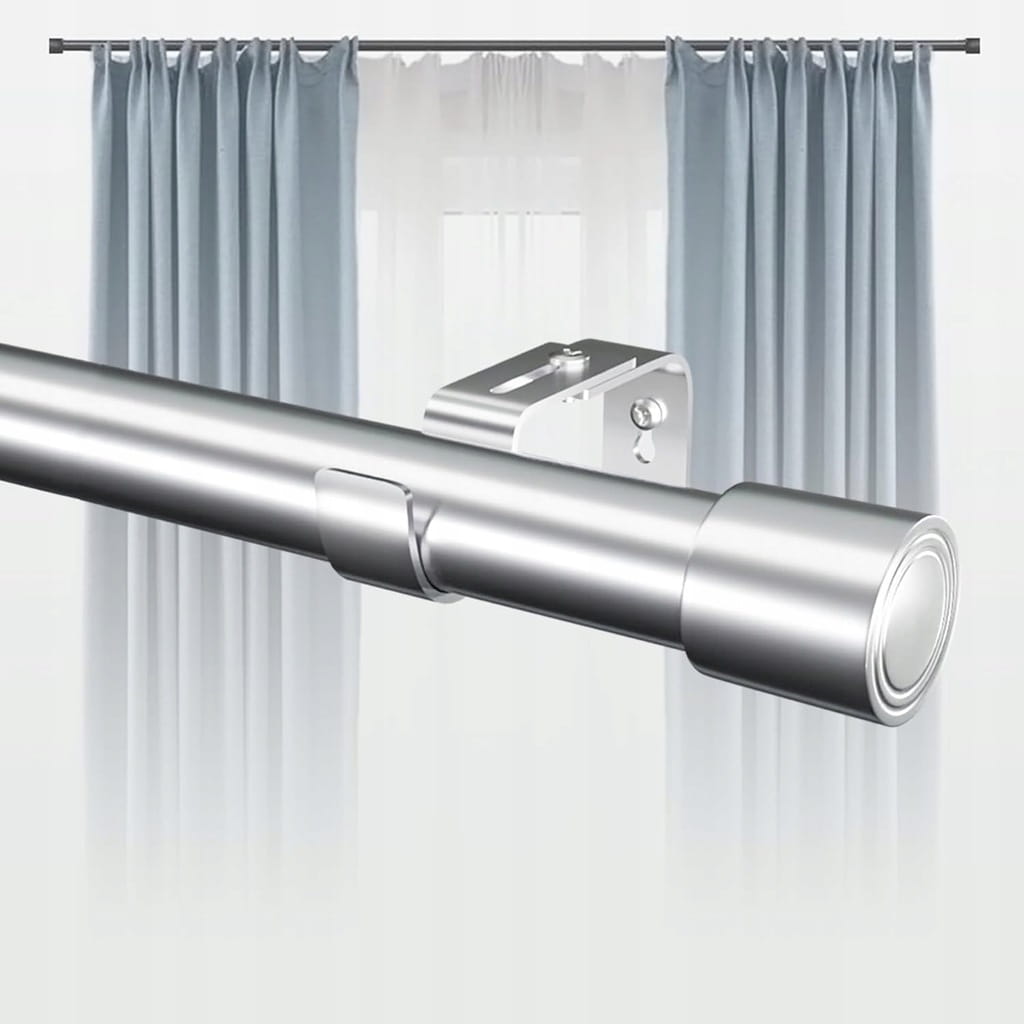 - ☑️ Solidny i trwały: Jest wykonany z wytrzymałego materiału. Pogrubiona konstrukcja 0,6 mm skutecznie zapobiega zginaniu się pręta, a także może dobrze wytrzymać ciężkie zasłony. Wysokiej jakości powłoka lakiernicza sprawia, że jest odporna na korozję i trwała.