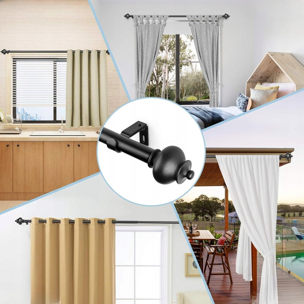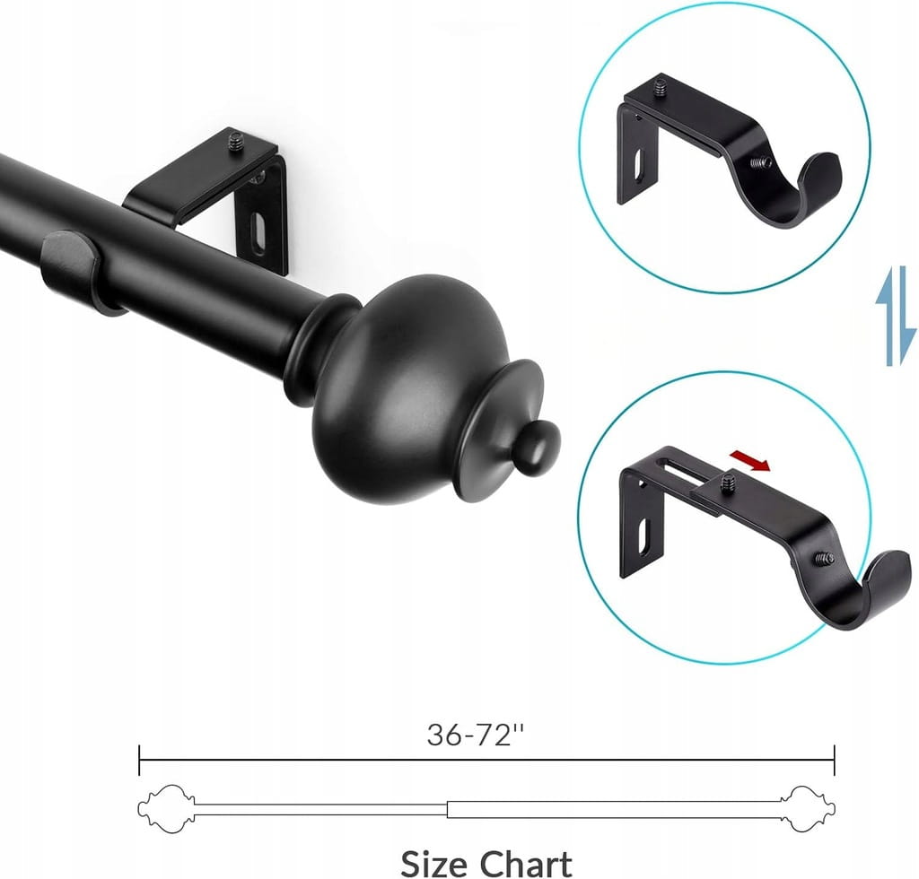 - ☑️ Atrakcyjne wzornictwo w stylu vintage: posiada eleganckie końcówki z żywicy w kształcie dyni i regulowane uchwyty, które wystają od ściany od 4,6 do 7,6 cm. Te dekoracyjne karnisze z czarnym wykończeniem dodadzą Ci prostego wyglądu elementów w stylu vintage do Twojego okna