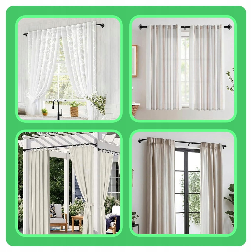 Czarny karnisz w nowoczesnym, industrialnym stylu z matowym wykończeniem doskonale komponuje się z różnymi aranżacjami wnętrz. Idealnie nadaje się do wieszania zasłon o średniej grubości oraz zasłon zaciemniających, zapewniając nie tylko funkcjonalność, ale również elegancki wygląd.