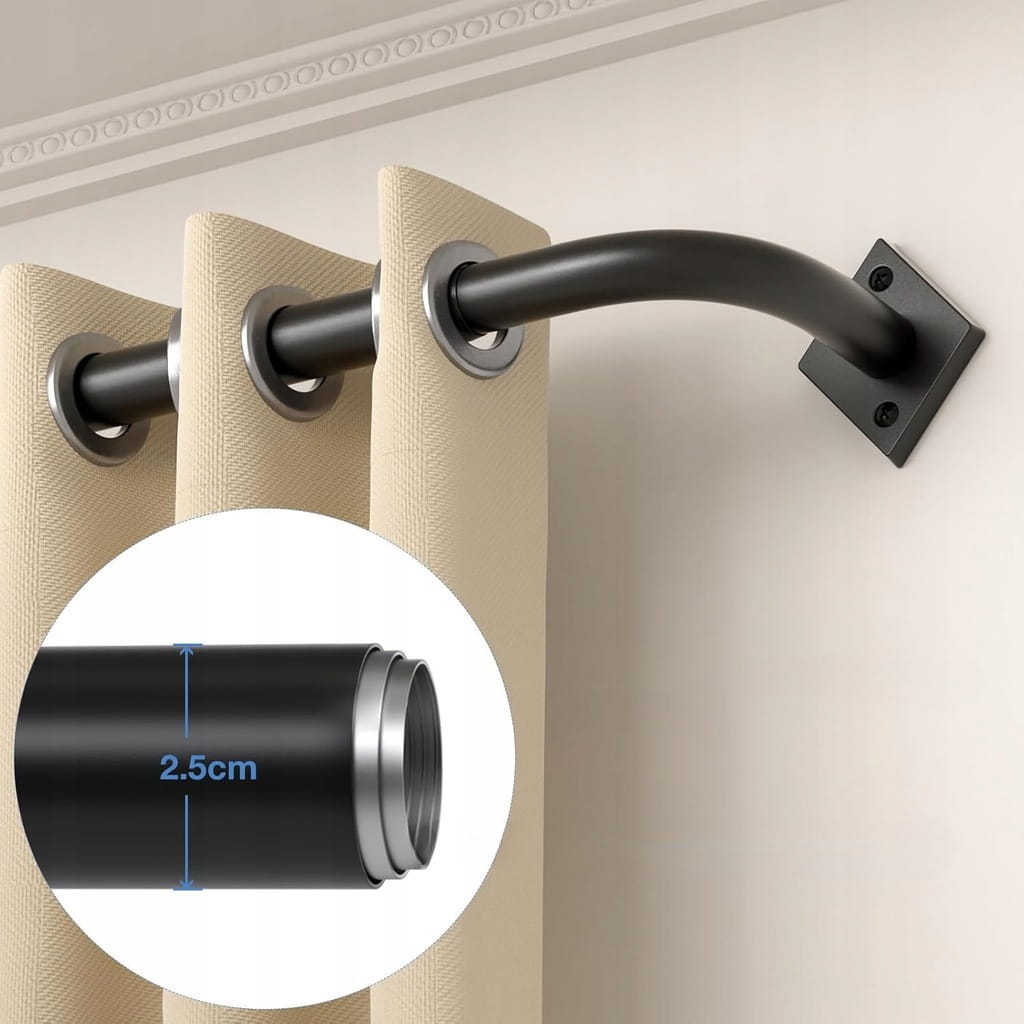 Matowe czarne wykończenie nadaje wnętrzu charakteru i podkreśla nowoczesny styl. Karnisz wykonany z wysokiej jakości metalu łączy trwałość z estetyką, tworząc rozwiązanie, które idealnie pasuje do każdego domu – od minimalistycznych loftów po klasyczne sypialnie i przytulne salony. Konstrukcja zapewnia stabilne zawieszenie zasłon, a możliwość montażu ściennego lub sufitowego daje pełną swobodę aranżacyjną.
