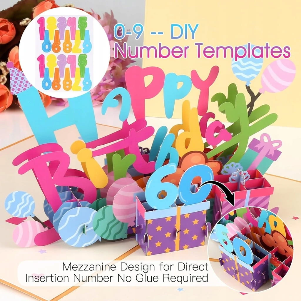 - ✅ Wiek: nasz zestaw kartek urodzinowych zawiera karty cyfrowe od 0 do 9, możesz samodzielnie wstawić odpowiedni wiek lub rok urodzenia, w zależności od wieku członków rodziny lub przyjaciół. Karty są również wyjątkowe z liczbami DIY, ponieważ można je dowolnie wkładać lub zdejmować.