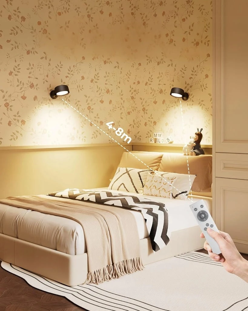 - ☑️ Super jasna i ściemniana lampa ścienna LED. Lampy ścienne LED FULEN są wyposażone w 40 diod LED dla optymalnej jasności, równomiernego rozkładu światła i ciągłego spektrum. Bez promieniowania UV/IR, oślepiania lub migotania – delikatne dla oczu i idealne dla rodziny i czytania. Jasność można regulować poprzez długie naciśnięcie przycisku dotykowego lub pilota zdalnego sterowania.