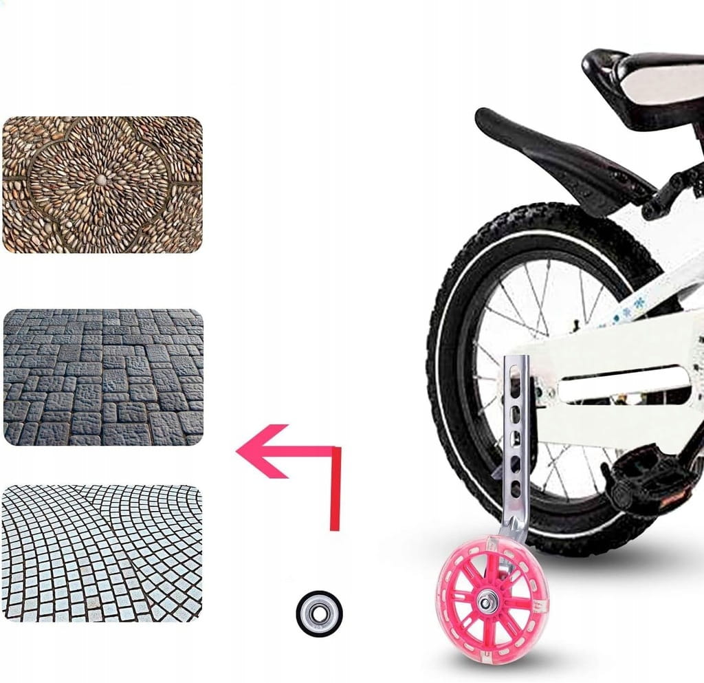 - ✅ Antypoślizgowe i ciche – nasze koła pomocnicze rowerowe są wykonane z wysokiej jakości metalu, tworzywa sztucznego i gumy. Są antypoślizgowe i ciche, dzięki czemu Twoje dziecko może być bezpieczniejsze i stabilniejsze podczas jazdy.