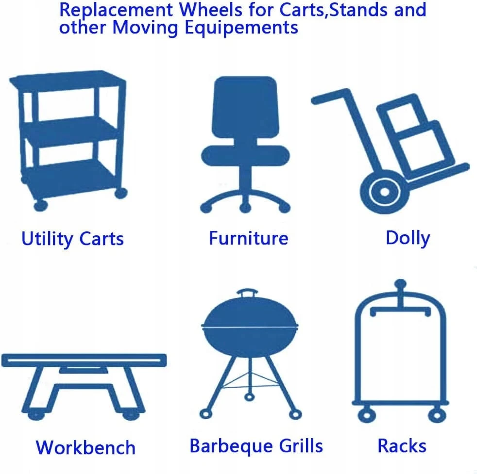 - Zastosowanie: Idealne kółka do sprzętu i mebli, w tym stolika kawowego, siedziska, półki, stojaka na rośliny, regałów, pojemników na buty, pojemników na zabawki, wózka sklepowego, stołu warsztatowego, wózka, wózka lub innych ciężkich rzeczy.