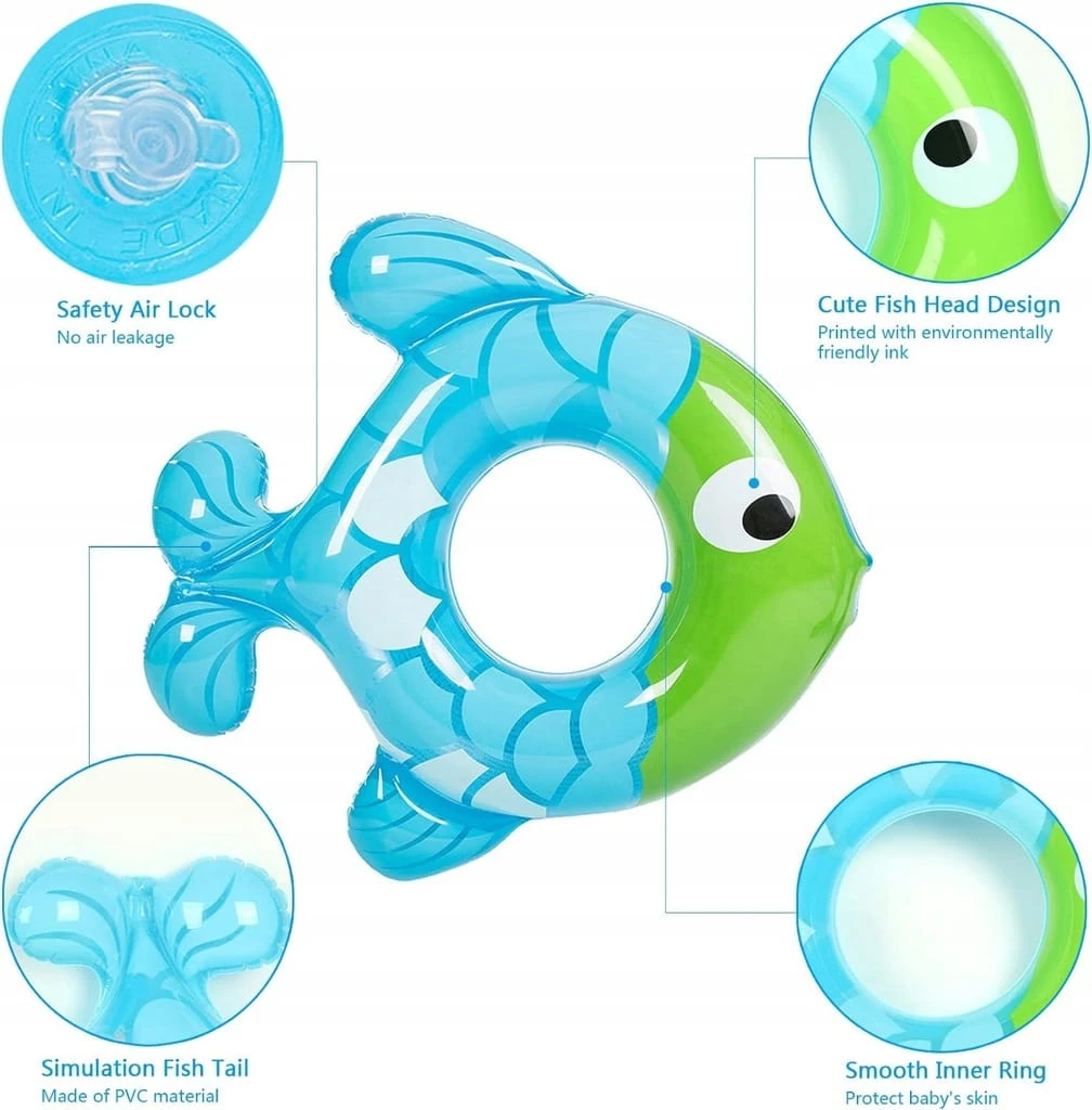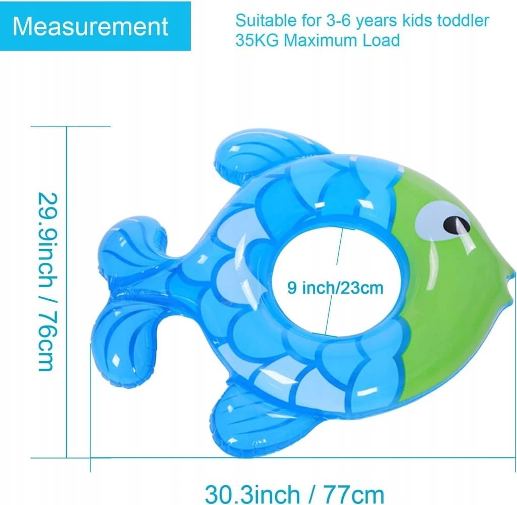 - ✅ Wzornictwo: po nadmuchaniu wymiary wynoszą 77 x 76 cm, a średnica wewnętrzna wynosi ok. 23 cm. Koło do pływania w kształcie ryby jest słodkie i uwielbiane przez dzieci, rygorystycznie testowane, aby spełnić amerykańskie i europejskie standardy, bezpieczne w użyciu.