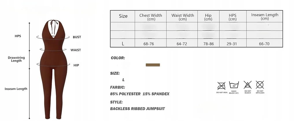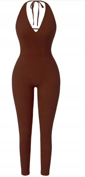 Kombinezon damski CLDFHX – długi, bez pleców, wiązany, prążkowany (rozmiar – L)